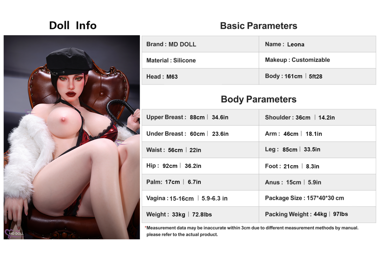MD Doll 161 cm | 5ft28 H-cup Leona full silicone sex doll (M-63) including real skin texture