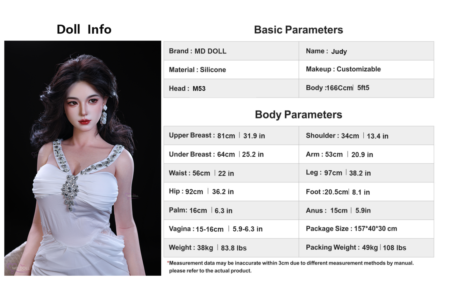 MD Doll 166(C) cm | 5ft45 D-cup Judy full silicone sex doll (M-53)